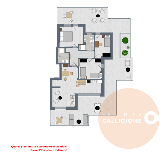 Dieses Apartment befindet sich im obersten Stockwerk eines Gebäudes der Energieklasse "A Nature" und besteht aus einem großzügigen offenen Wohnbereich mit Küche, drei Schlafzimmern, zwei Bädern und großen Terrassen.