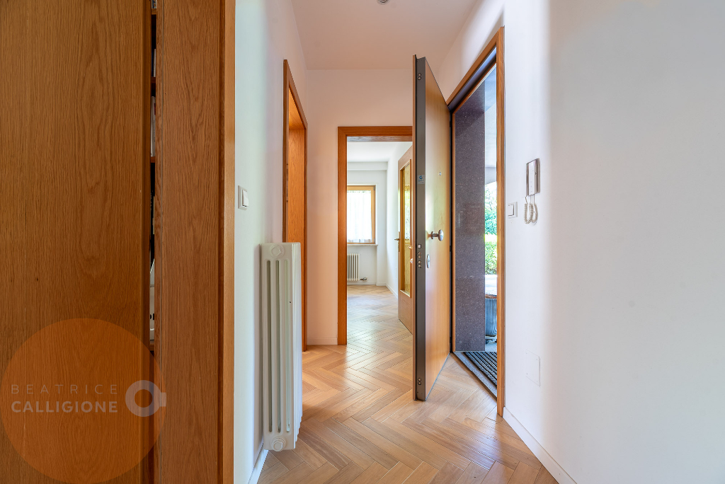 L’appartamento è dotato di riscaldamento autonomo, un dettaglio importante per chi desidera gestire in modo indipendente comfort e consumi. Completano la proprietà una cantina, un posto auto privato (€ 18.000) e garage (€ 30.000).